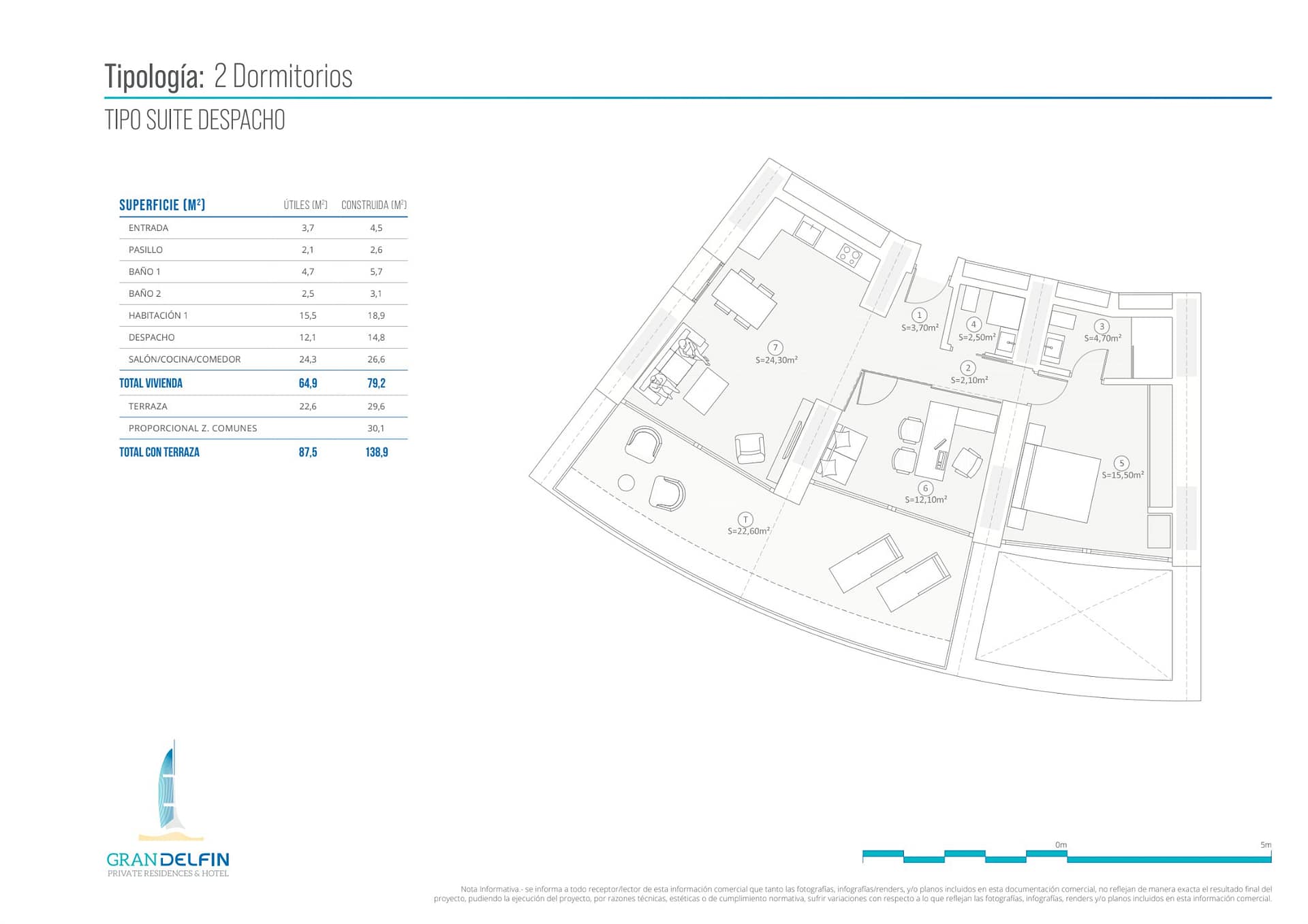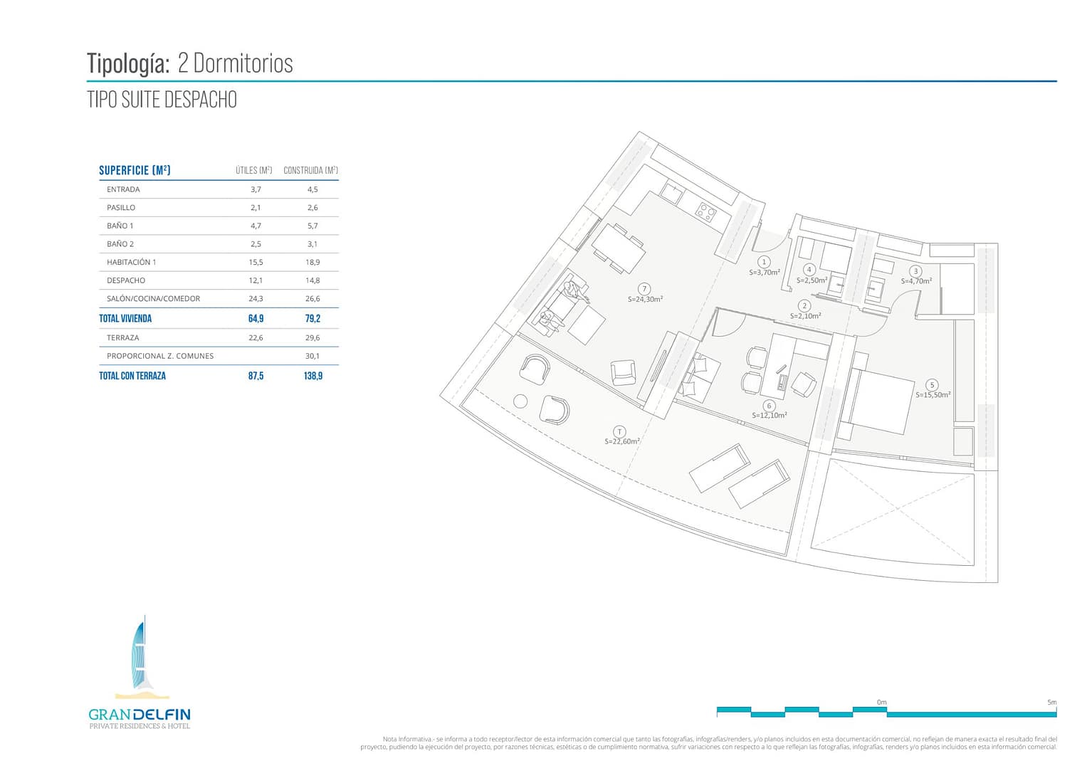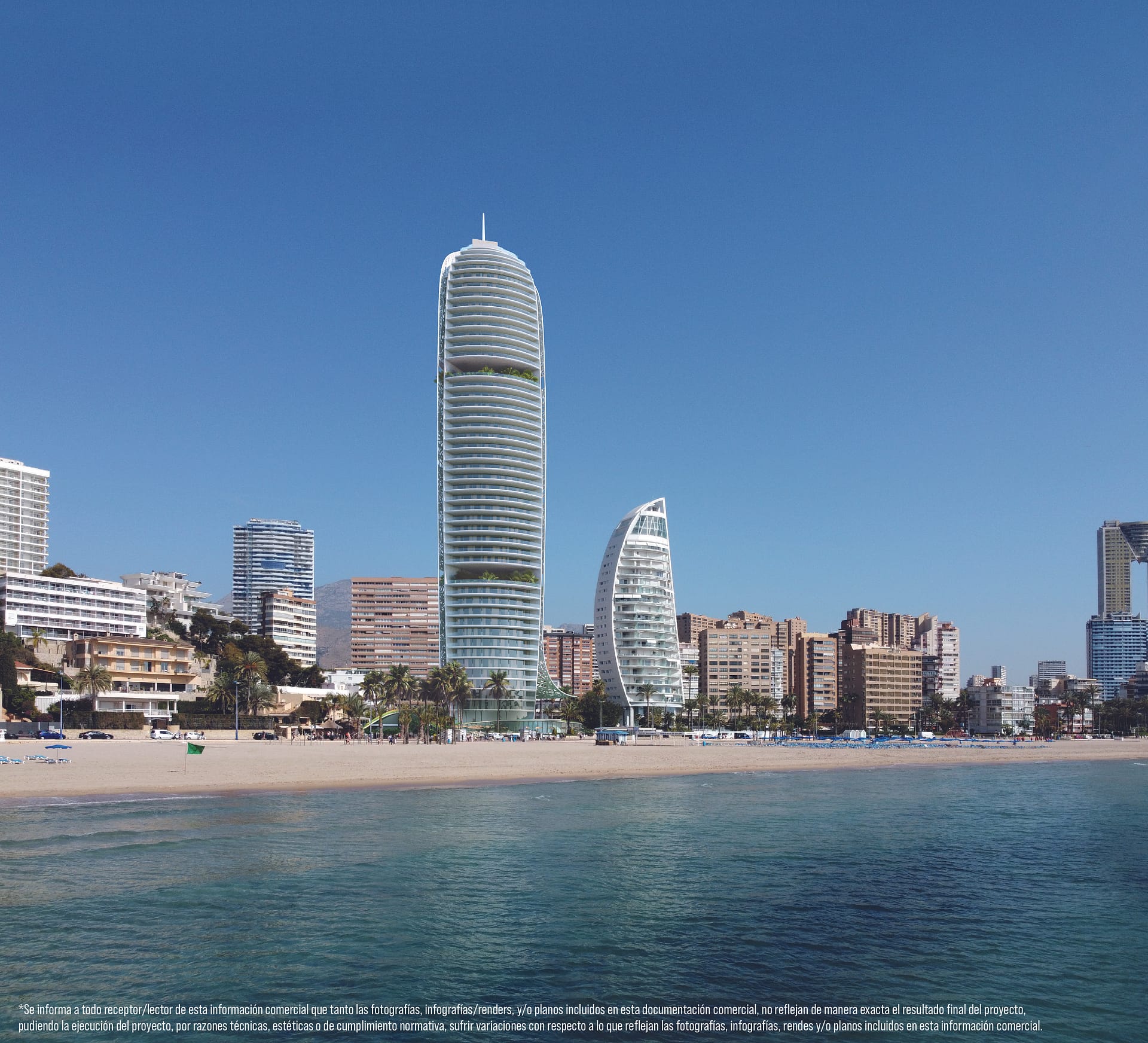The apartments are equipped with modern features that ensure comfort and functionality. The porcelain tile flooring adds a touch of elegance and durability to the interior spaces. The inclusion of appliances and a home automation system ensures that each home is prepared for contemporary needs, facilitating daily life. The integrated air conditioning provides a pleasant environment throughout the year, while the built-in wardrobes offer efficient and stylish storage solutions. The private terraces, available in each unit, allow for enjoying the sea views and the mild climate of Benidorm.