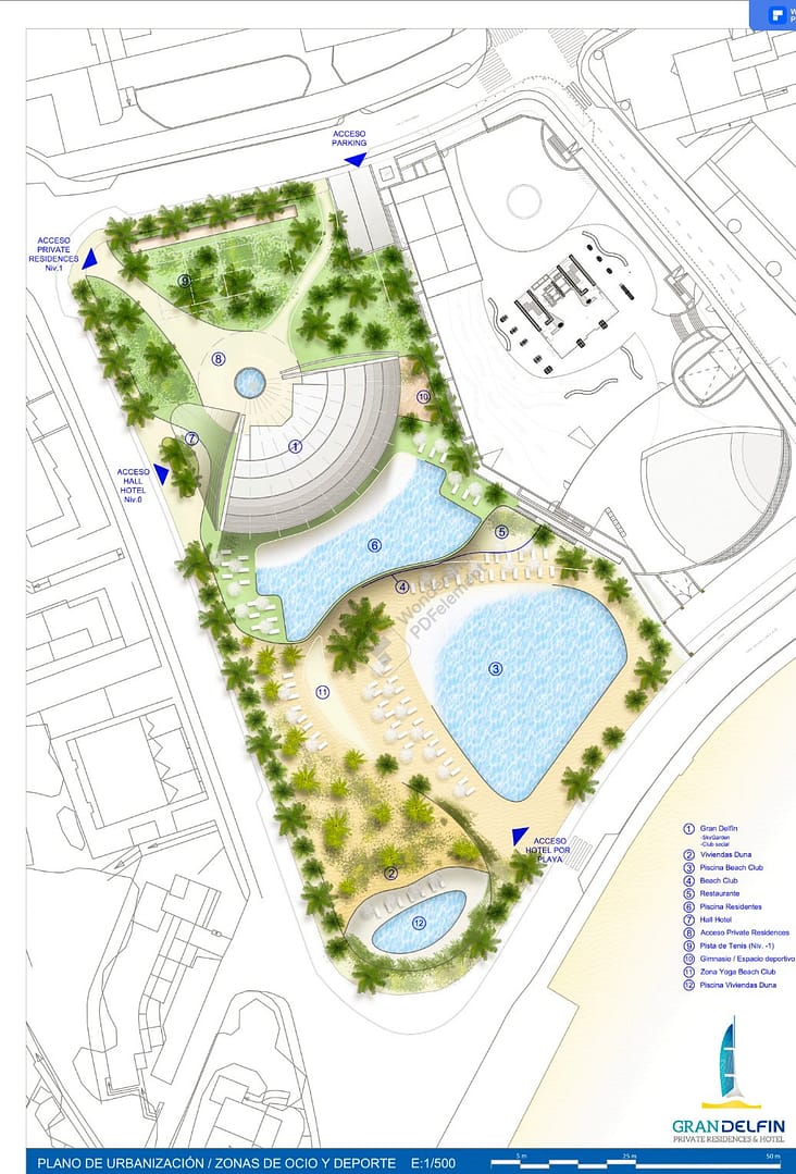 The exteriors of this residential complex in Benidorm are designed to maximize enjoyment of the Mediterranean climate. Just 100 meters from the sea, residents can enjoy the sea breeze and sea views from the comfort of their private terraces. The landscaped areas provide a green and tranquil environment, ideal for relaxing walks or enjoying a moment of outdoor rest. Additionally, the presence of a tennis court offers the opportunity to practice sports without leaving the complex, while the communal pool is perfect for cooling off during the warm summer days.