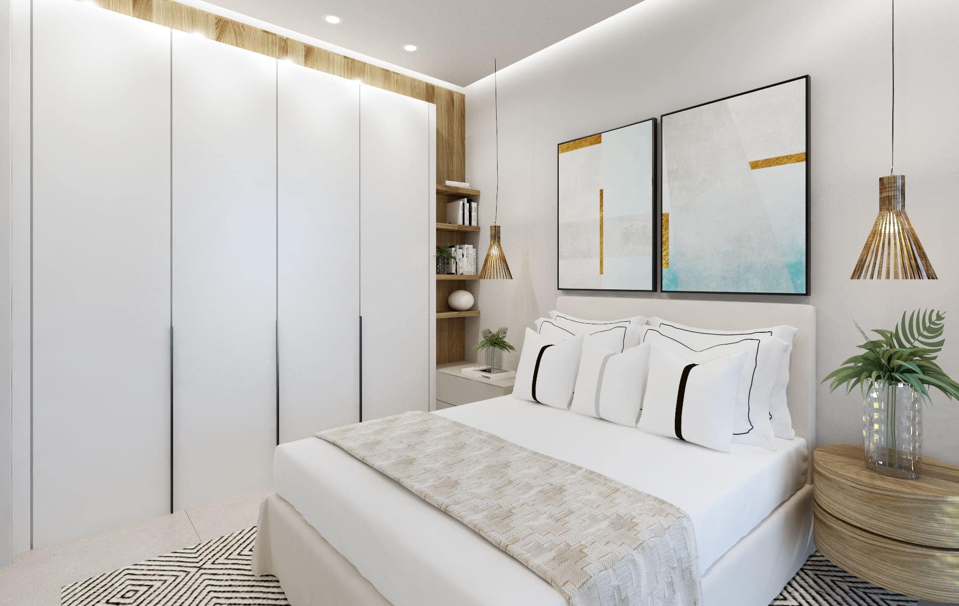 The residences are equipped with a range of features that ensure a high level of comfort. All properties come furnished and feature ceramic floors, providing a modern touch and easy maintenance. Climate control is assured with air conditioning and additional pre-installation, while electric shutters and the video intercom add extra convenience and security. Built-in wardrobes optimize storage space, and the included appliances make daily life easier.