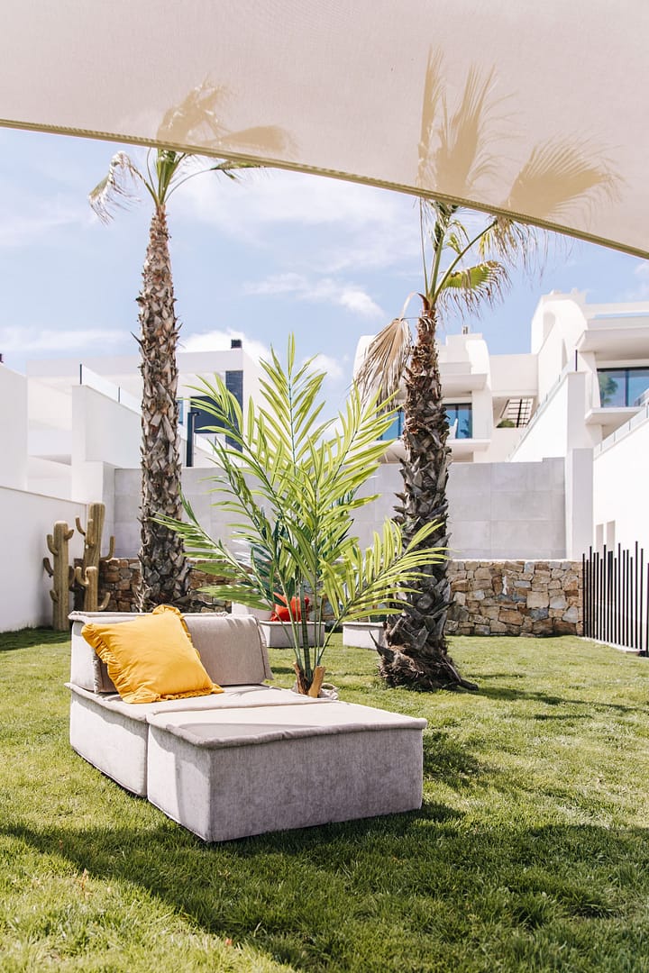The outdoor spaces of these properties are designed to maximize enjoyment of the Mediterranean climate. Each bungalow features a private garden, ideal for relaxation or outdoor activities. Additionally, the terraces offer extra space for leisure, allowing enjoyment of the views and natural surroundings. The inclusion of a solarium provides a perfect spot for sunbathing in the privacy of your home.