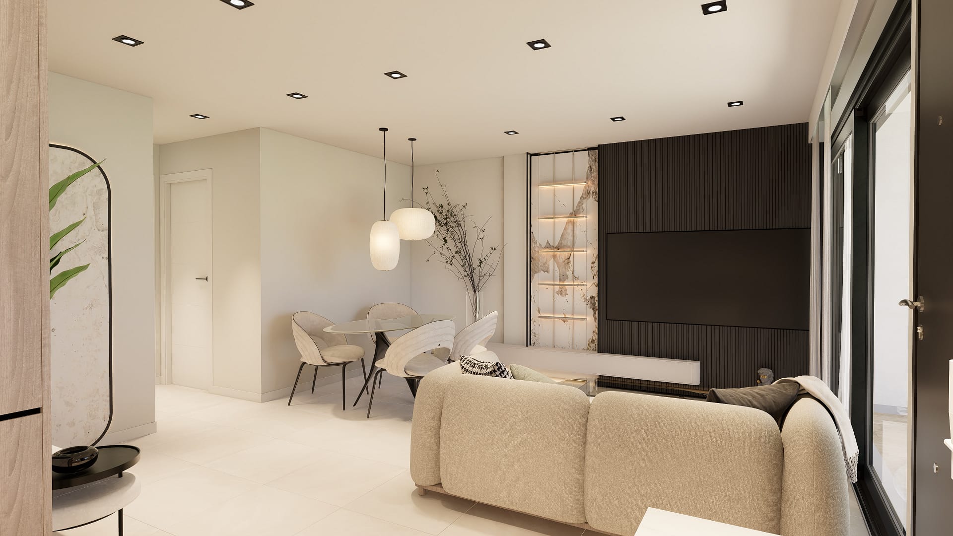 The exteriors of these bungalows are designed to maximize enjoyment of the Mediterranean climate. Each home features a private garden, ideal for creating a personal green space or enjoying outdoor family moments. Additionally, the terraces offer a perfect place to relax, sunbathe, or enjoy outdoor dining. The proximity to the sea, just 1.7 km away, adds an extra allure, allowing residents to enjoy coastal walks and water activities at any time.