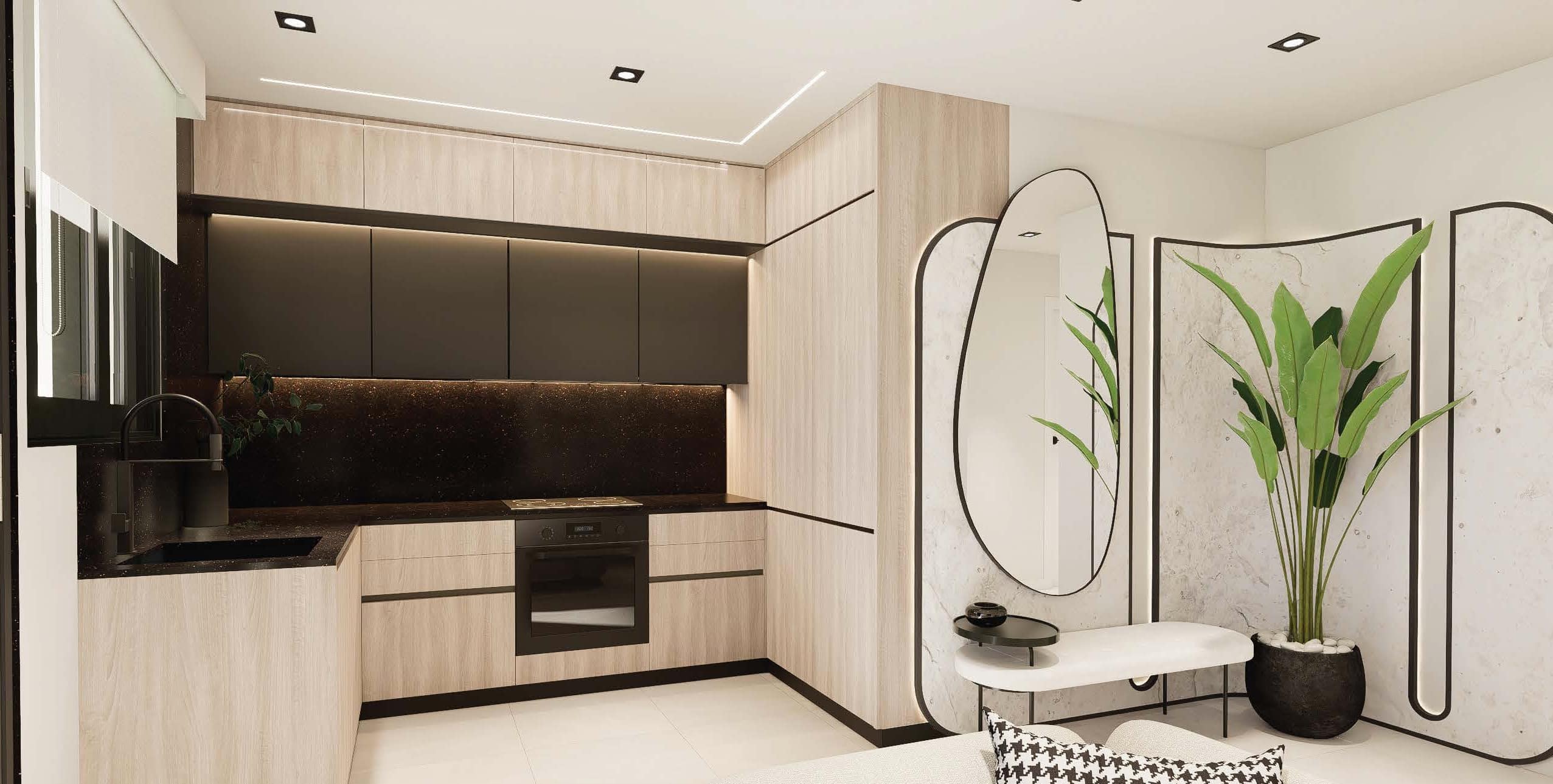 The exteriors of these bungalows are designed to maximize enjoyment of the Mediterranean climate. Each property features a private garden, perfect for creating a personal green space or enjoying outdoor moments. Additionally, the terraces offer an ideal place to relax or share with friends and family. For those seeking panoramic views, the high-bungalows include a solarium, providing additional space for leisure and relaxation. The proximity to the sea adds special value, allowing enjoyment of the sea breeze and beach walks just one kilometer away.