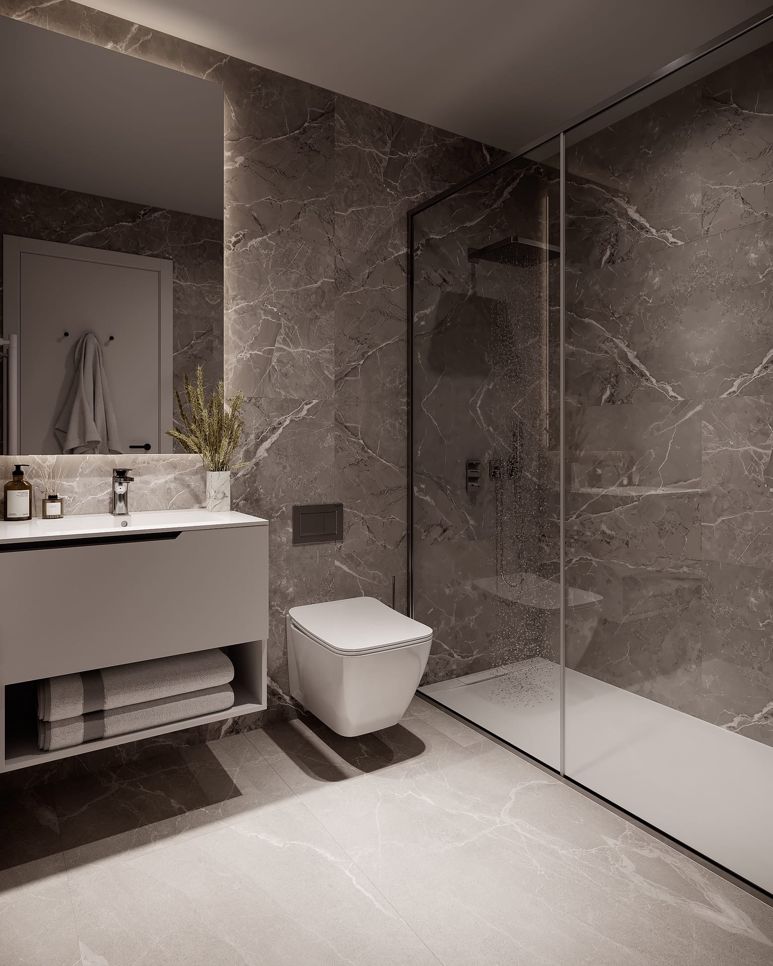 The interior of these homes is designed to offer a cozy and functional environment. Distribution options include homes with 2 and 3 bedrooms, all with 2 bathrooms, making them ideal for both families and couples. High-quality finishes, such as porcelain floors and integrated appliances, ensure a modern and elegant environment. Built-in wardrobes provide efficient storage, while electric shutters and video intercom add a touch of comfort and security to each home.