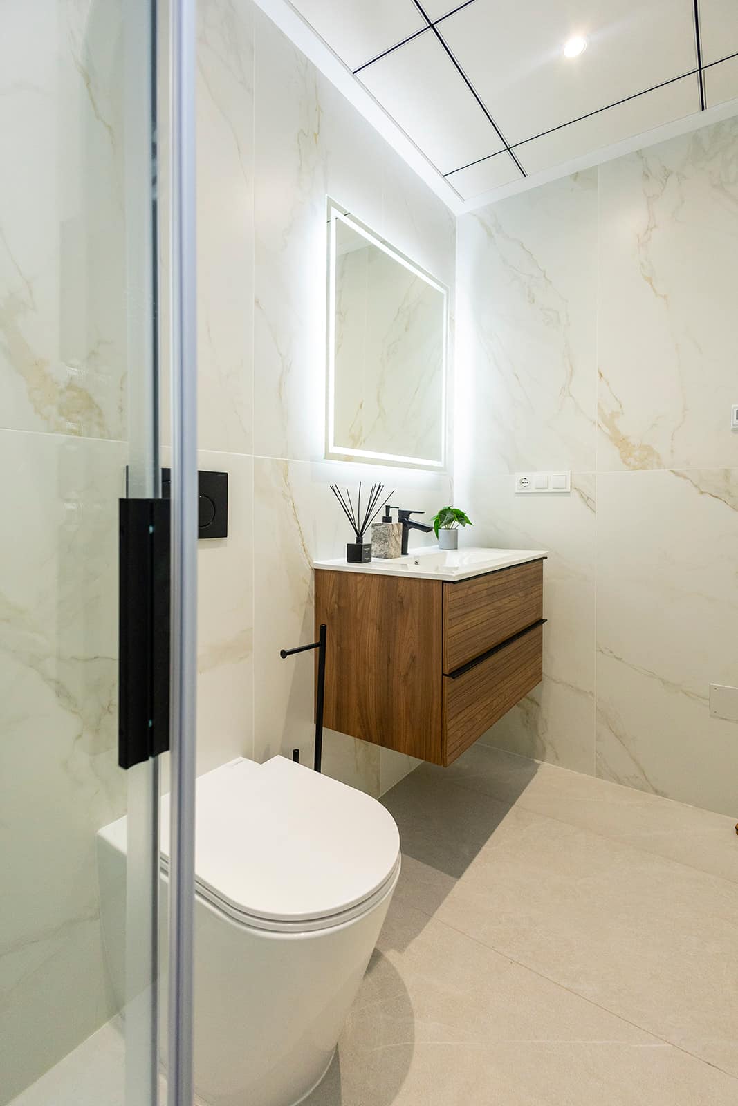 The interior of the townhouses is designed with attention to detail, offering a cozy and modern environment. Porcelain floors add a touch of elegance and are easy to maintain. The layout includes two bedrooms and two bathrooms, providing adequate space for daily living. Kitchens are equipped with appliances, making everyday life easier. Built-in wardrobes offer efficient storage solutions, while electric shutters and a video intercom add comfort and security. The pre-installation of air conditioning allows for adjusting the indoor climate to personal preferences. Additionally, there is an option to add a solarium, expanding the possibilities for space usage.
