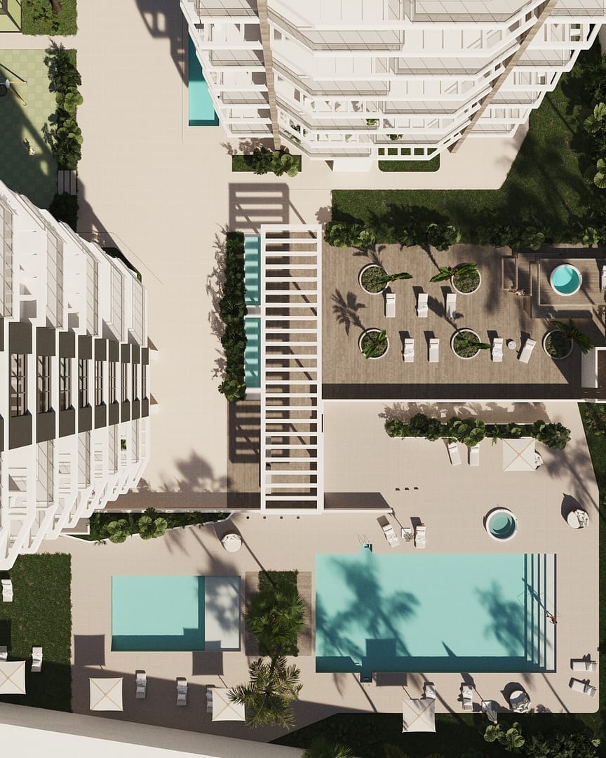 The residences are designed to offer maximum comfort and functionality. The apartments and penthouses feature 2, 3, or 4 bedrooms and 2 bathrooms, catering to the needs of different types of families. The layout includes private terraces, ideal for enjoying the outdoors with privacy. The interiors are equipped with built-in wardrobes, porcelain stoneware floors, and a home automation system that facilitates the control of various home functions. The inclusion of air conditioning and modern appliances ensures a comfortable environment throughout the year. Electric blinds add a touch of convenience and modernity to the spaces.