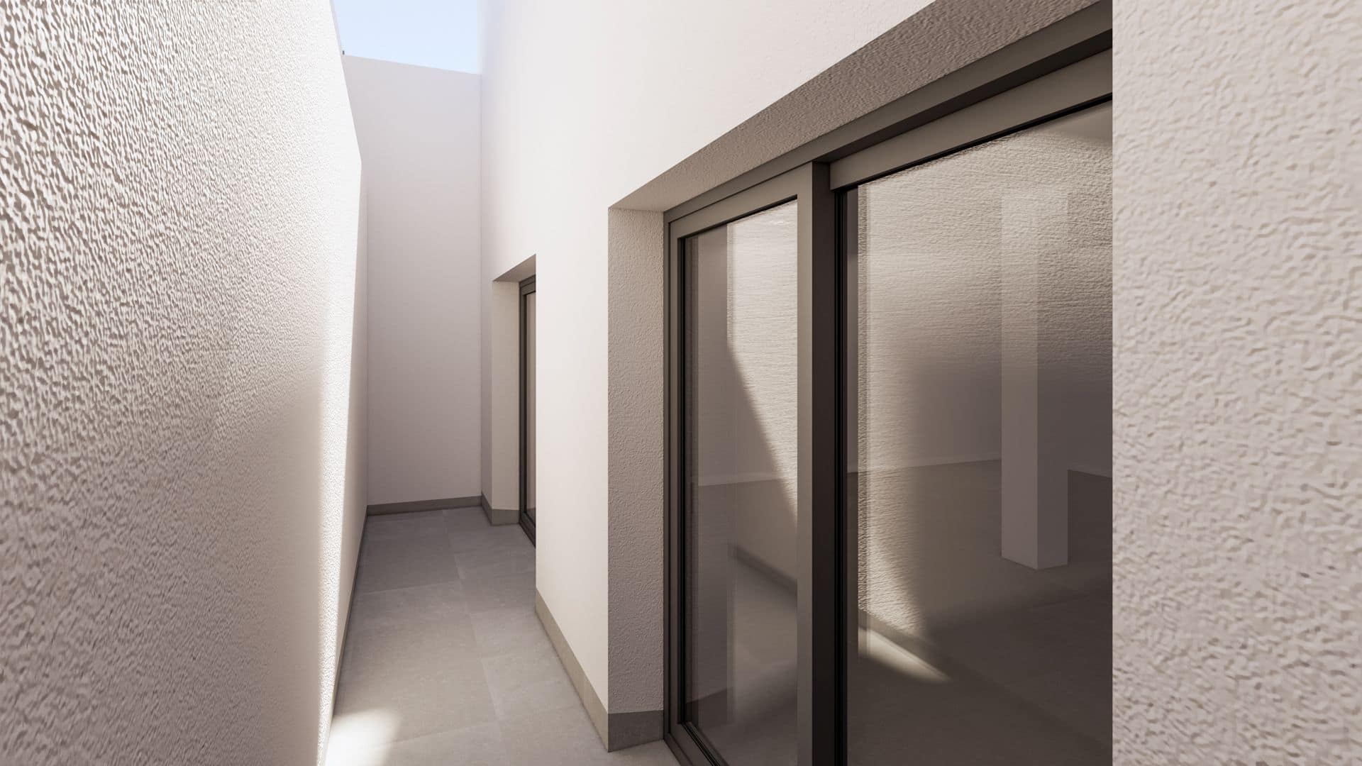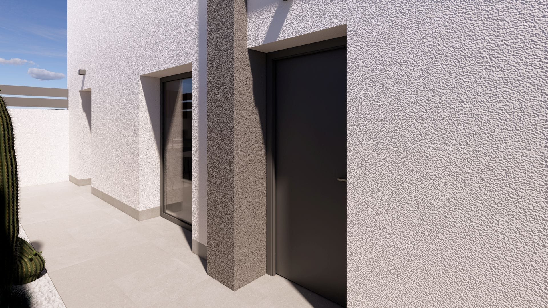 The exterior of this detached villa in Benijófar is designed to fully enjoy the Mediterranean climate. The property boasts a private pool, perfect for cooling off on hot days or enjoying leisure moments with family. The terrace is an ideal space for relaxing, sunbathing, or enjoying outdoor meals. The villa’s location offers a peaceful and secure environment, ideal for those seeking a private and exclusive retreat.