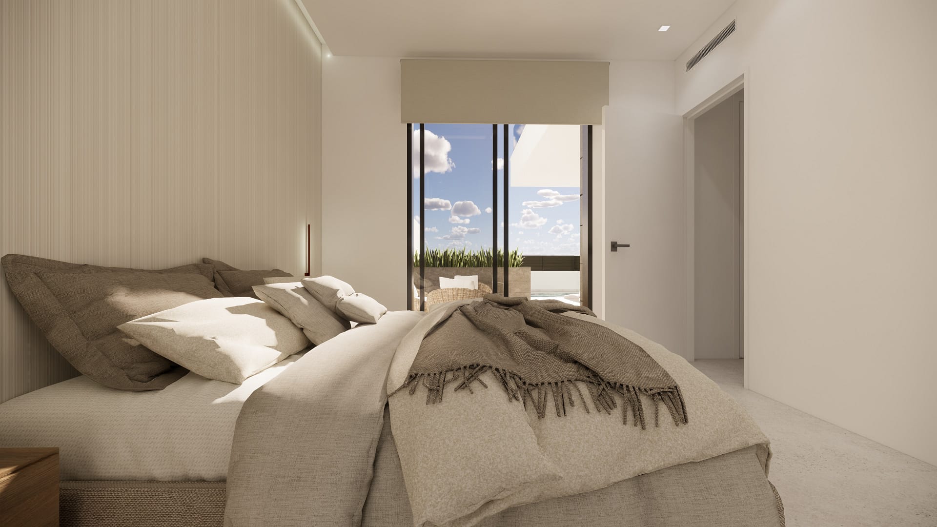 The villas boast an exterior design that stands out for its elegance and functionality. The presence of a private pool provides a perfect space to enjoy the Mediterranean climate, offering moments of relaxation and fun with family or friends. Additionally, the solarium is an ideal place to sunbathe or enjoy the surrounding views. The terrace complements these outdoor spaces, allowing for al fresco dining or simply relaxing at the end of the day.