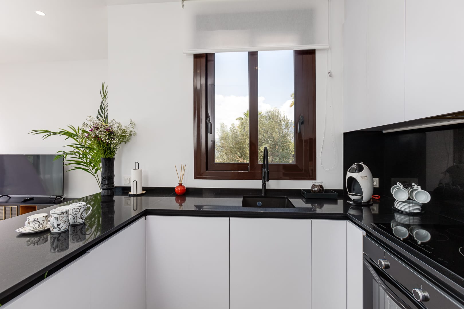The interior of these detached homes is designed to maximize comfort and functionality. Ceramic floors provide a modern touch and are easy to maintain. The kitchen is equipped with high-quality appliances, making daily tasks easier. Electric shutters and a video intercom add an extra level of convenience and security. Built-in wardrobes offer efficient storage space, while the pre-installation of air conditioning allows for a pleasant temperature year-round.