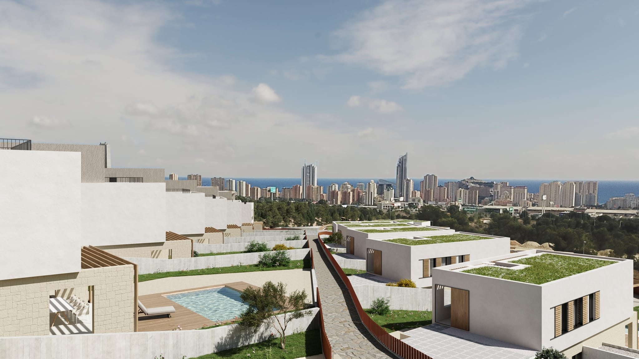 Located in the charming town of Finestrat, these exclusive villas offer a privileged setting with sea views. With a total of 20 properties, each villa is designed to provide maximum comfort and elegance. The proximity to the sea, just 3 km away, allows for the enjoyment of the sea breeze and an unparalleled natural environment. These villas are ideal for those seeking a home in a quiet, yet well-connected location, with all modern conveniences. The property type is “Villa”, ensuring a sophisticated and exclusive lifestyle.