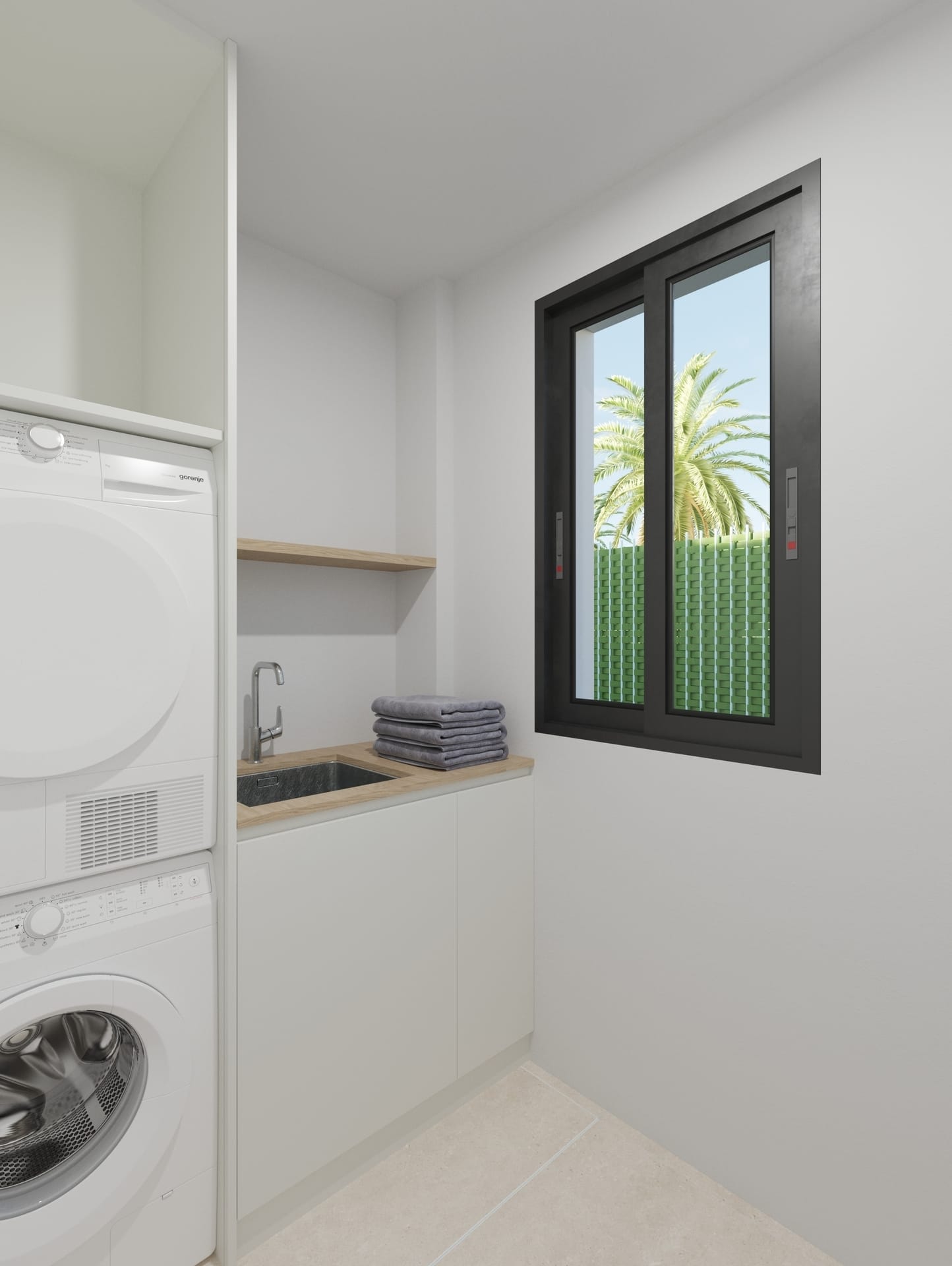The interior of these detached homes is designed to maximize comfort and functionality. With three bedrooms and two bathrooms, each space is carefully laid out to offer comfort and privacy. Porcelain tile floors add a touch of elegance and durability. Electric shutters and built-in wardrobes are standard features that enhance the home’s functionality. Additionally, the pre-installation of air conditioning ensures that the indoor climate is always suitable, adapting to the needs of each season.