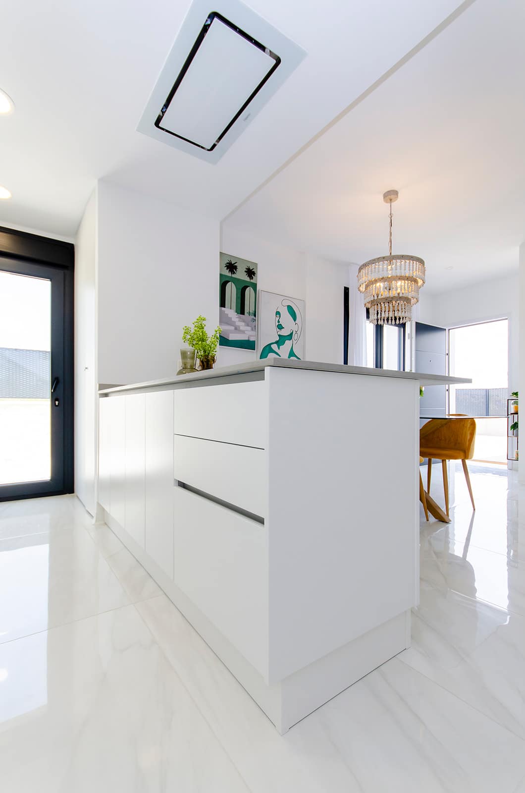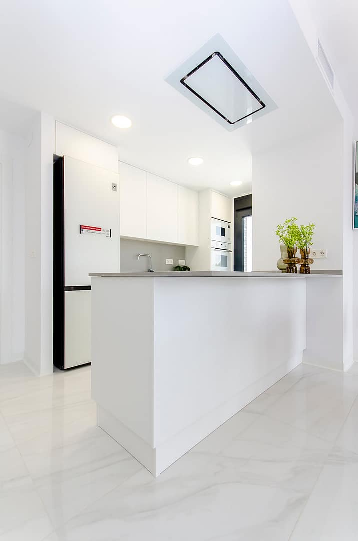 The interior of these homes in Orihuela is designed with a focus on comfort and functionality. Ceramic floors add a modern touch and are easy to maintain. The homes come fully furnished, making moving in easy and allowing enjoyment of the new home from day one. The kitchen is equipped with high-quality appliances, and the built-in wardrobes in the bedrooms offer ample storage space. The air conditioning system, along with additional pre-installation, ensures a pleasant environment throughout the year. Electric blinds and the video intercom add an extra level of comfort and security.