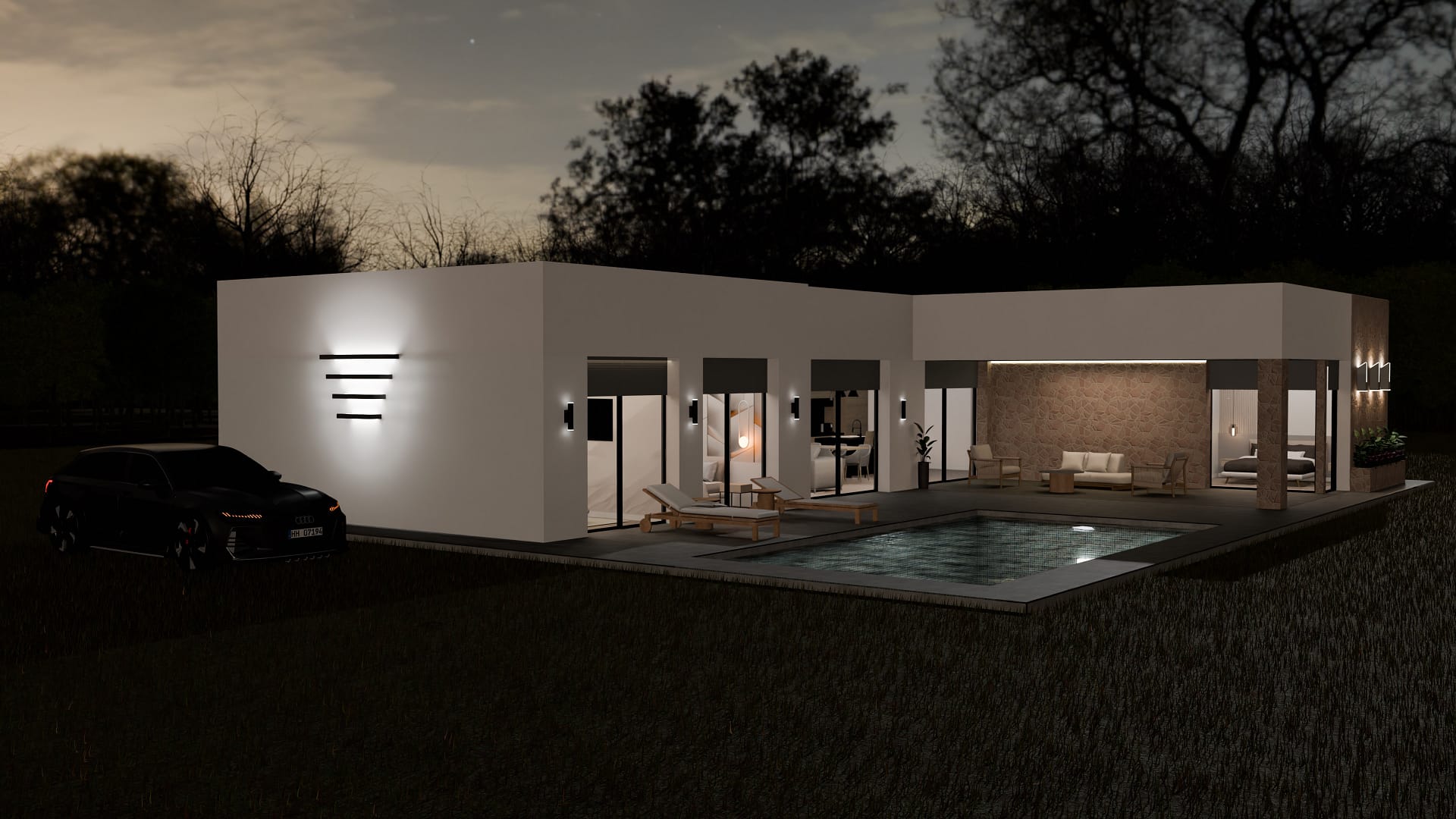 The interiors of these detached homes are designed with comfort and functionality in mind. The porcelain tile floors add a modern and elegant touch to the spaces. The homes are equipped with appliances, making daily life easier from day one. Built-in wardrobes offer efficient storage solutions, while electric blinds add convenience and security. The pre-installation of air conditioning ensures that the indoor climate is always suitable, adapting to the needs of each season. Additionally, each home includes a garage, providing a secure parking space.