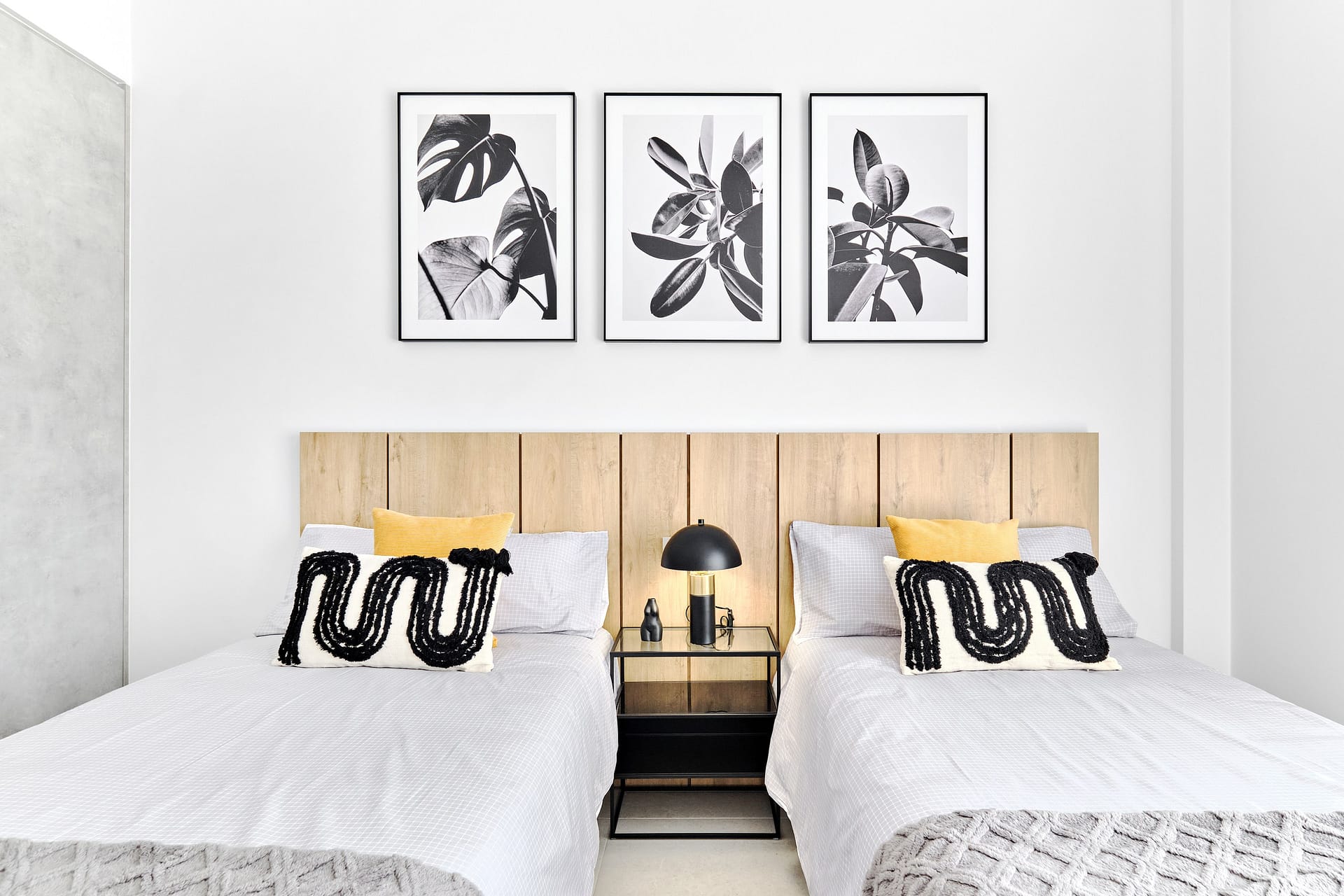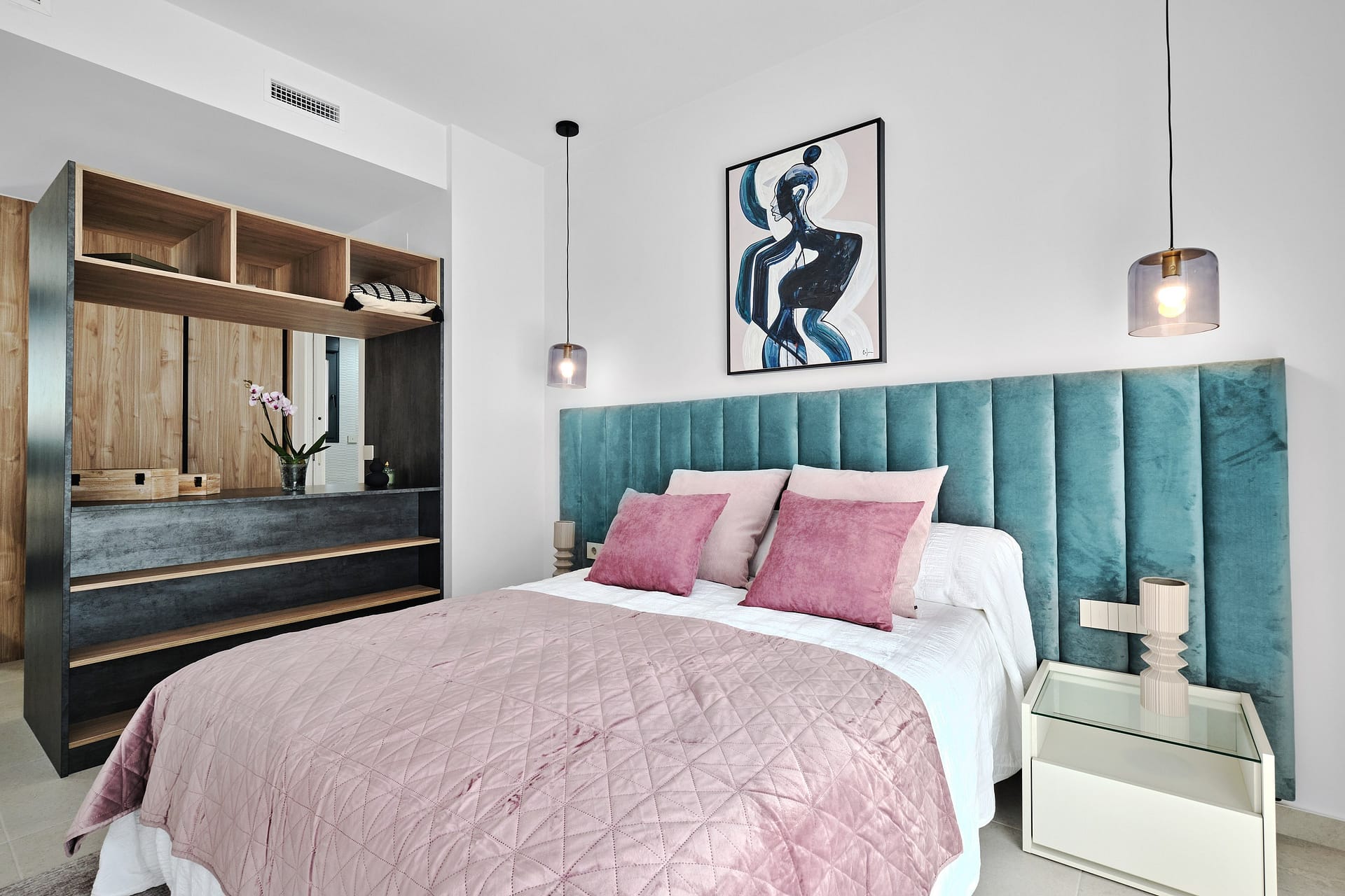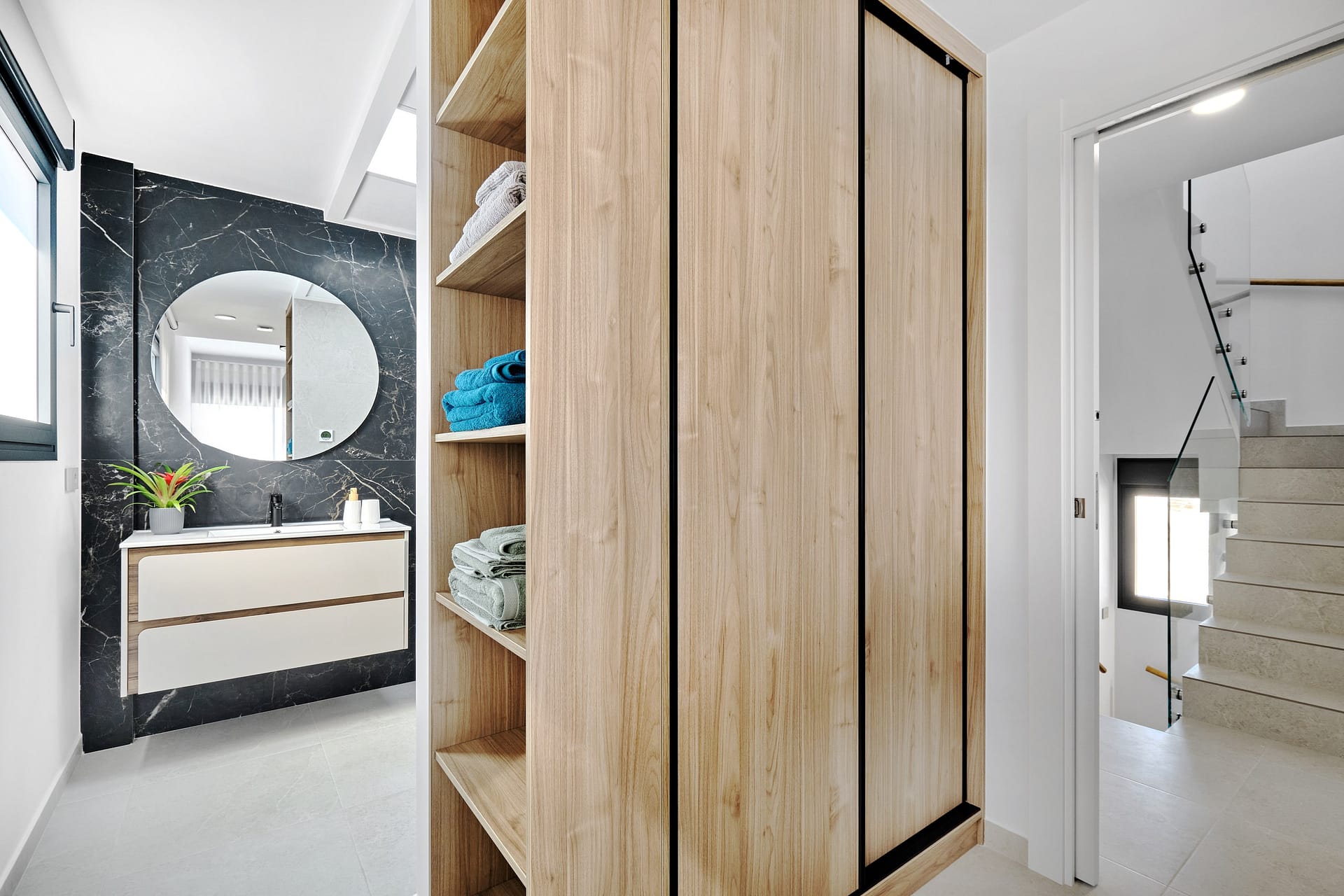 The exterior design of these detached homes in San Miguel de Salinas is intended to enjoy the Mediterranean climate. Each property features a private pool, perfect for cooling off during warm summer days. Additionally, the terraces offer an ideal space for outdoor relaxation or al fresco dining with sea views. The option of a solarium allows residents to make the most of the sun year-round, creating an additional space for leisure and relaxation.