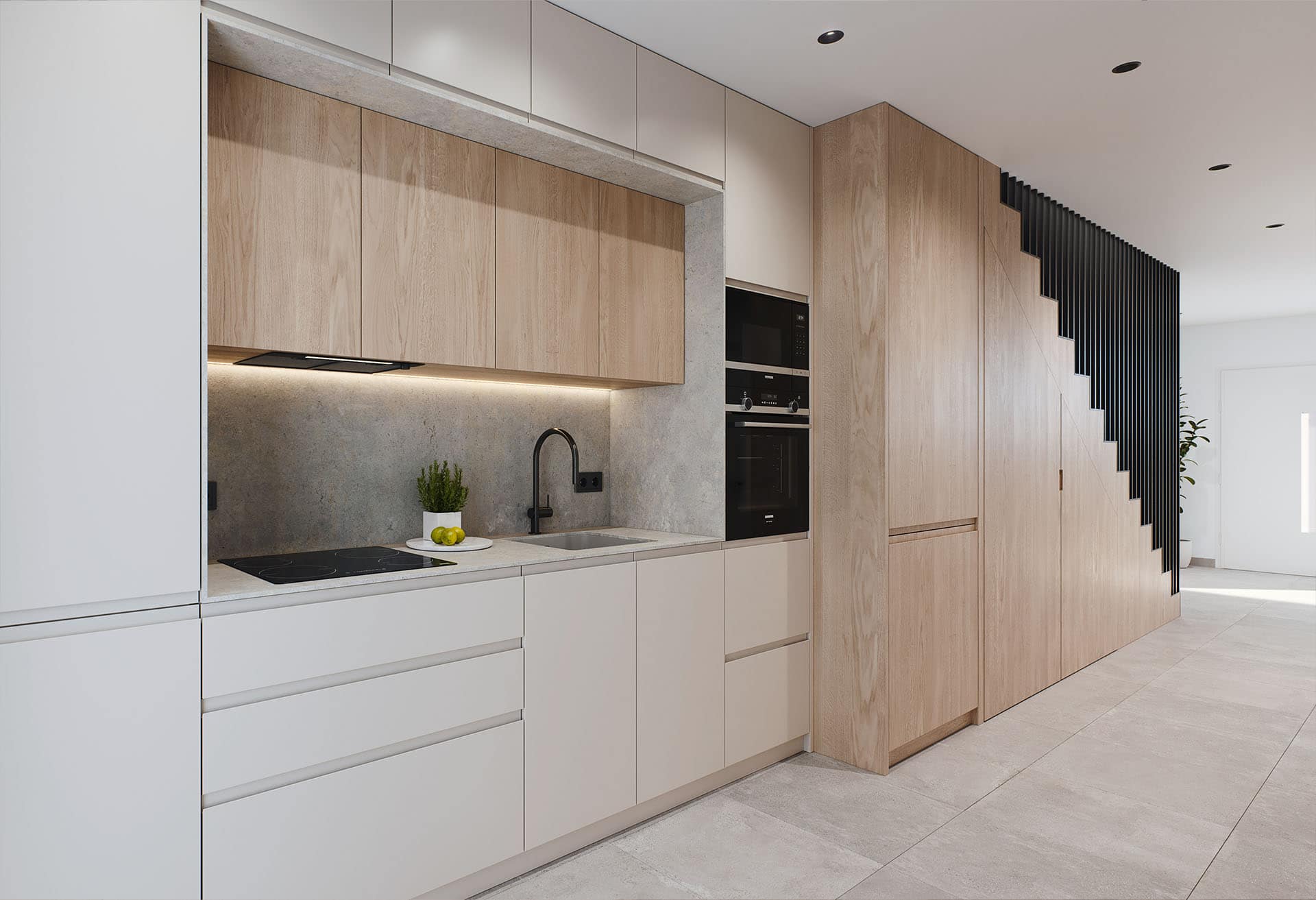 The homes feature attractive outdoor spaces, including private gardens and terraces, ideal for enjoying the Mediterranean climate. Additionally, each property has a private pool, offering a perfect space for outdoor leisure and relaxation. The presence of a solarium adds a special touch, allowing for panoramic views and moments of rest under the sun. The combination of these outdoor elements ensures a welcoming and functional environment for the whole family.