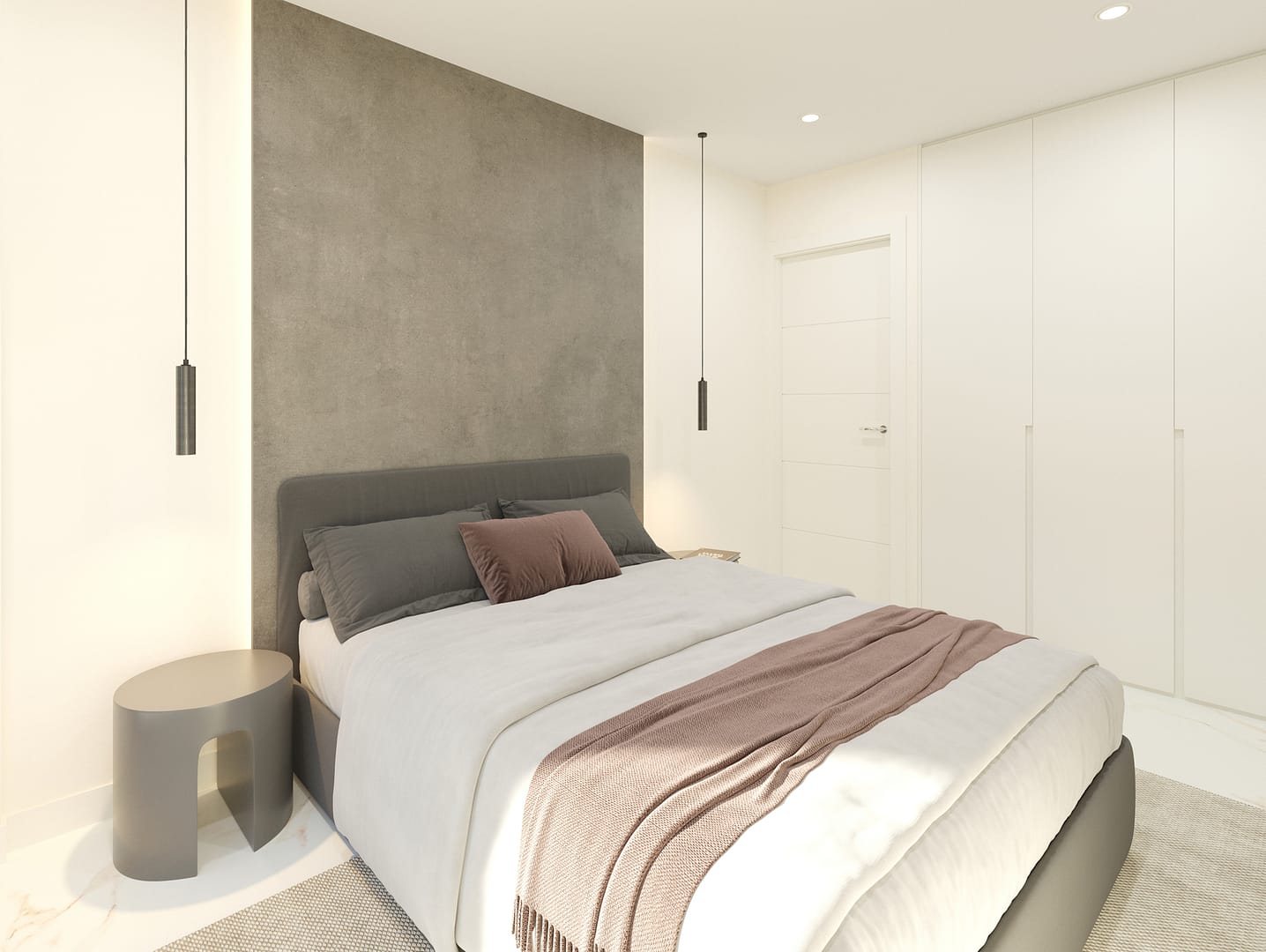 The interior of the townhouses is designed to offer a cozy and functional environment. With three bedrooms, these homes are perfect for families needing extra space. The three bathrooms ensure comfort and privacy for all household members. Porcelain stoneware floors add a touch of elegance and are easy to maintain, ideal for everyday living. Additionally, built-in wardrobes in the bedrooms provide efficient storage, keeping spaces tidy and clutter-free. Every interior detail is designed to offer a comfortable and modern home.