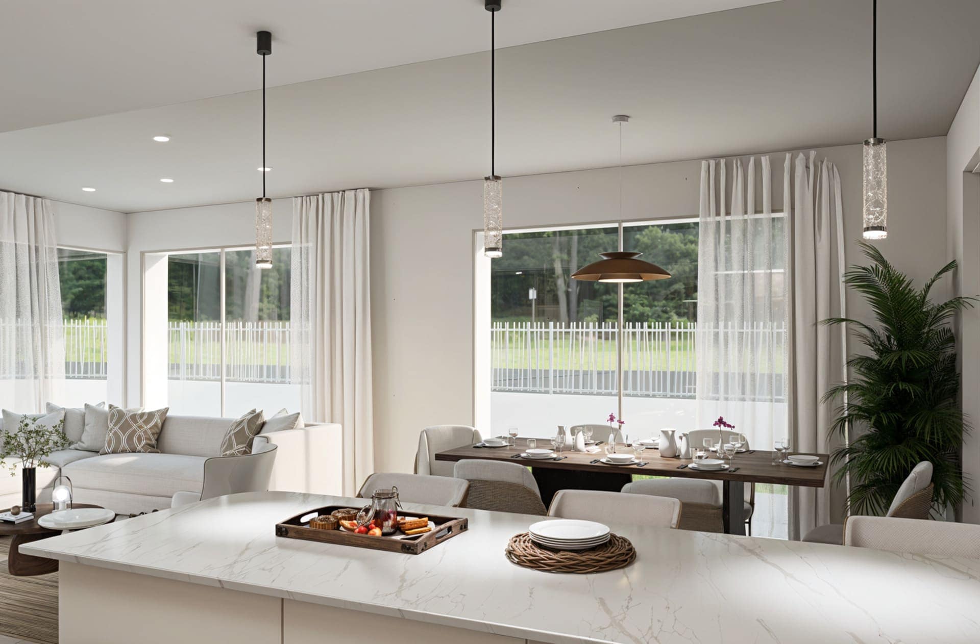 The interior of these townhouses is designed to offer a cozy and modern atmosphere. Each home features three bedrooms and three bathrooms, providing ample and comfortable space for families or those who value extra room. The homes are equipped with air conditioning, ensuring comfort throughout the year. Built-in wardrobes offer practical and elegant storage solutions. Additionally, the homes include appliances, making the move and start of a new life in this privileged setting easier. The video intercom adds an extra level of security and convenience, allowing efficient control of access to the home.