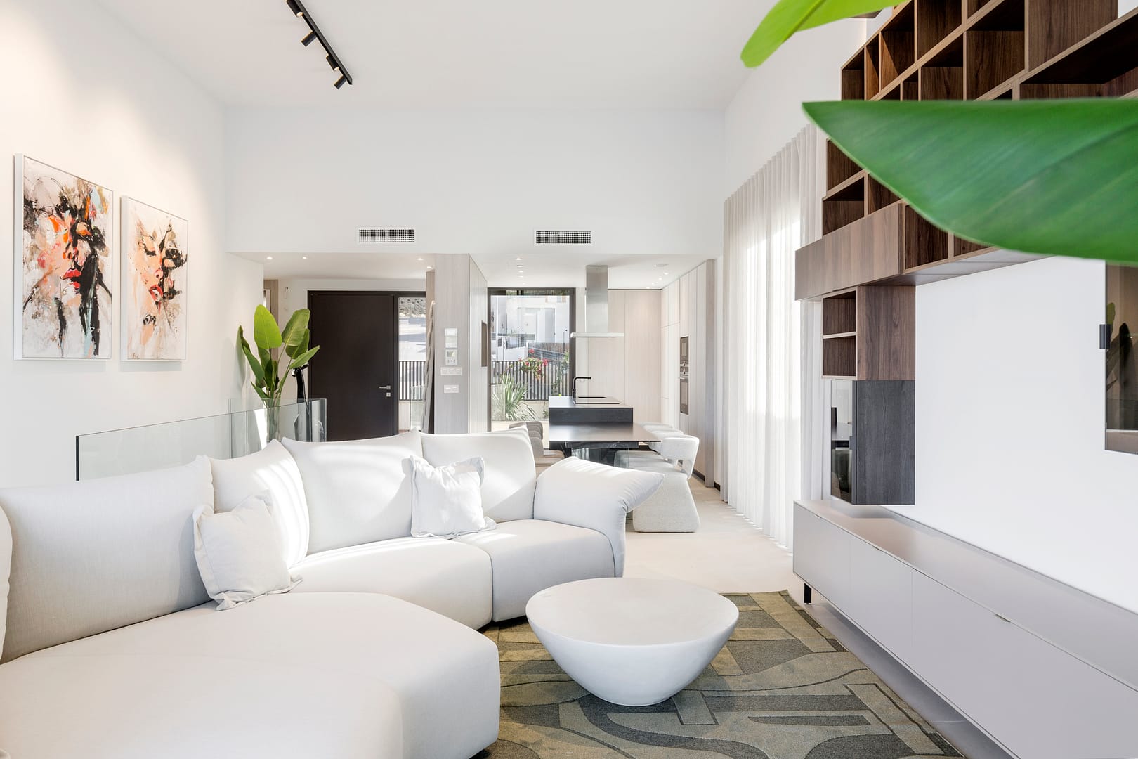 The interior of these villas in Algorfa is designed to offer a modern and comfortable space. The properties feature 3 bedrooms, providing adequate space for families or guests. The bathrooms, available in 2 or 3 options depending on the type, are equipped with underfloor heating, ensuring maximum comfort throughout the year. The inclusion of modern appliances and an advanced home automation system facilitates daily life, allowing efficient control of home functions. Built-in wardrobes offer practical and elegant storage, optimizing space usage in each room.