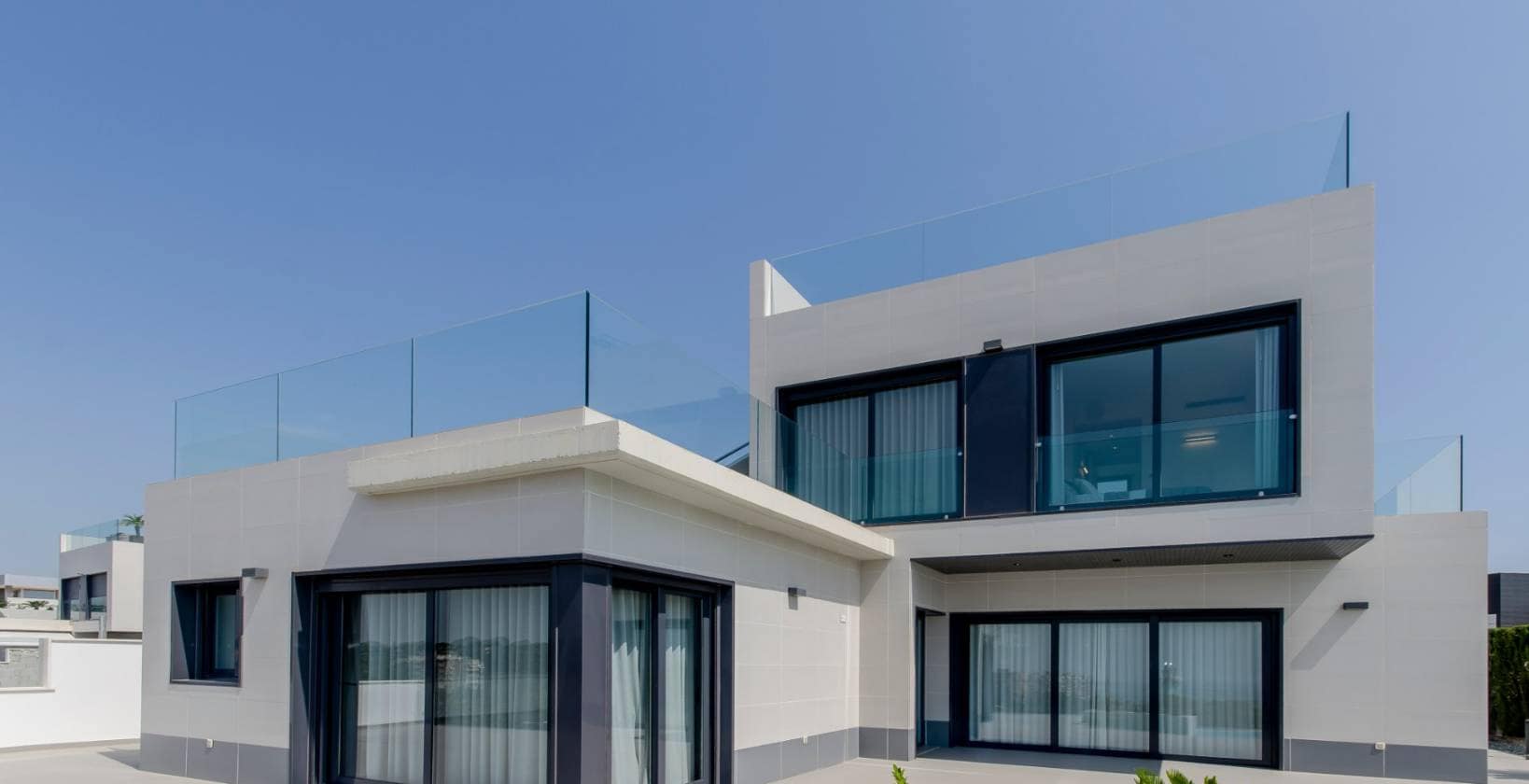 The exterior design of the villas in Orihuela stands out for its elegance and functionality. Each property features a private garden, perfect for enjoying the Mediterranean climate. The spacious terraces offer additional space for relaxation and outdoor entertainment. Additionally, each villa includes a solarium, ideal for sunbathing and enjoying panoramic views. The inclusion of a private pool in each villa adds a touch of luxury, allowing for a refreshing dip on the hottest days. Access to a private garage ensures convenience and security for vehicles.