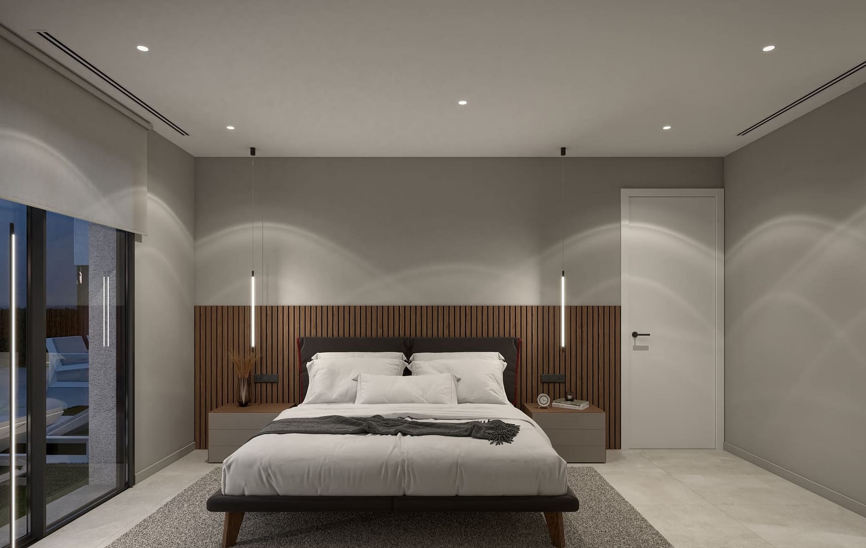 The exterior design of the villas in Torre-Pacheco is intended to maximize enjoyment of the Mediterranean climate. Each villa features a private garden, ideal for creating a personal green space or enjoying outdoor moments. The terrace is perfect for relaxing or hosting gatherings with friends and family. Additionally, each villa includes a solarium, an additional space offering panoramic views and an ideal spot for sunbathing in privacy. The inclusion of a private pool in each villa adds a touch of luxury, allowing for refreshing dips on hot days and enjoying leisure moments without leaving home.