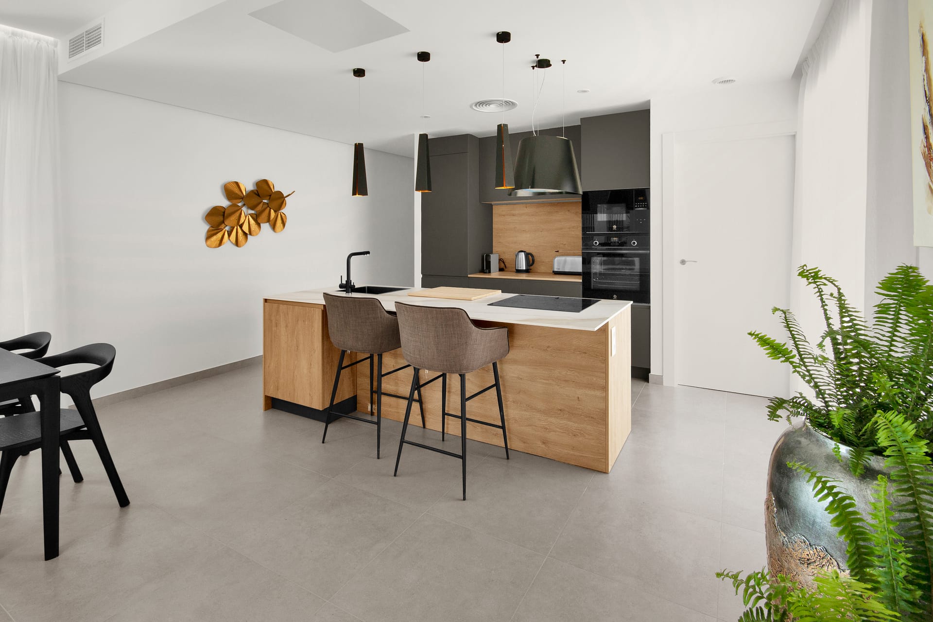 The outdoor spaces of these independent homes in Murcia are designed to maximize enjoyment of the Mediterranean climate. Each property features a private garden, ideal for creating a personal oasis of tranquility. Additionally, the terraces offer a perfect space for relaxing or enjoying outdoor meals. The inclusion of a pergola adds a touch of elegance and functionality, providing shade and style. For those who enjoy swimming or simply relaxing by the water, the private pool is a luxury not to be overlooked. These outdoor elements are designed to offer an unparalleled outdoor lifestyle.